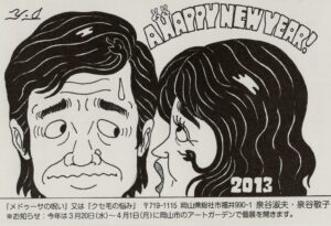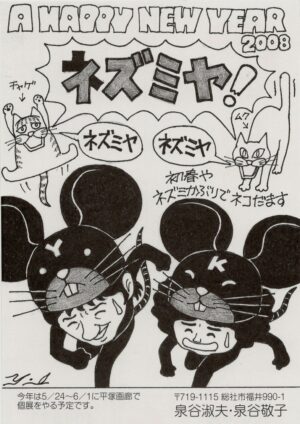 コレクションされているのは、泉谷画伯の元に届いた年賀状の数々。ユーモアとセンスと愛情あふれる作品の数々をお楽しみください。