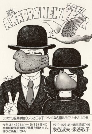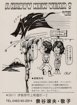 12年×4回分の年賀状ギャラリーの中には、48年分の時間がぎゅっと詰まっています。年賀状とともに目まぐるしく変化する泉谷画伯のエピソードにもぜひご注目ください。