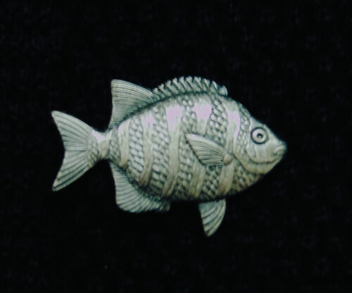 このタイピンもその全身像に真っ向から立ち向かい、リアルに再現しています。動きはないのですが、目などは生きている感じです。種類は真鯛ではなく、ずんぐりした体形と白黒の縞模様が特徴の石鯛でしょう。サイズ的には小さなタイピンですが、かなり目立つので周囲の反応もあり、私のお気に入りのひとつになっています。