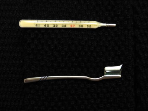この体温計は今では懐かしい水銀の体温計です。だいぶ前から体温計もデジタル時代に入ったので、今でもこれを使っているという人はかなりのアナログ派でしょう。脇に挟んで5分くらい計り、体温を確認したら手で振って水銀柱を元に戻すなんてことをやっていましたね。それにしてもこの体温計、リアルでしょう!