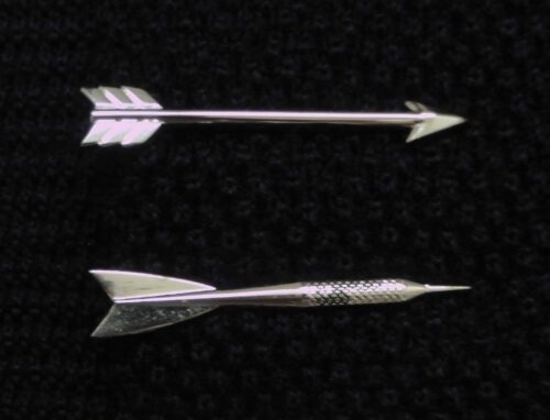 上は弓を弾いて放つ通常の矢ですが、下は何の矢だか分かりますか?これはダーツという競技(遊び)に使う矢で、手で持って的に投げつけるものです。二つに共通しているのは細長く鋭い形態です。先端も尖っていますから、ニットタイへの着脱が意外に難しいのです。